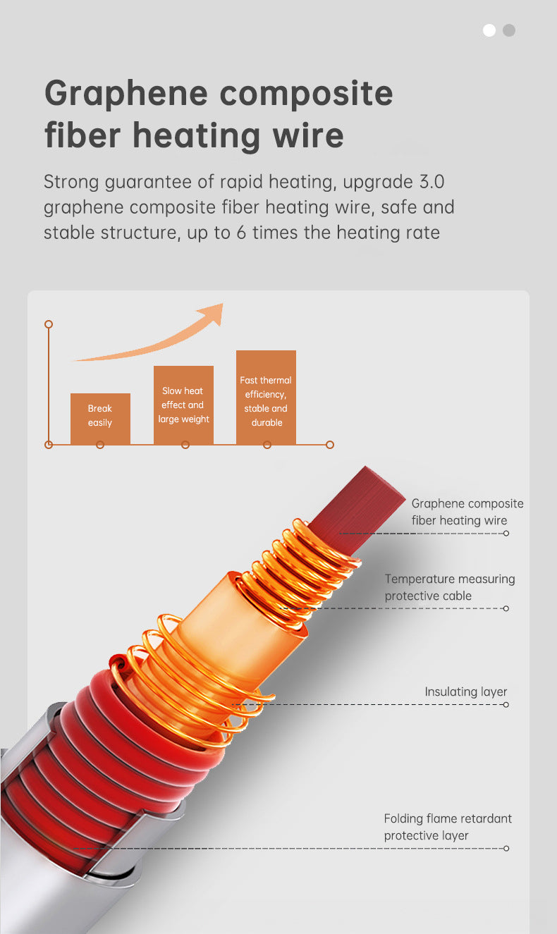 - 5 seconds rapid heating: carbon fiber filaments generate heat, the heating speed is fast, the waiting time is reduced, and the heating is balanced, and the heat is released with all-round care.
