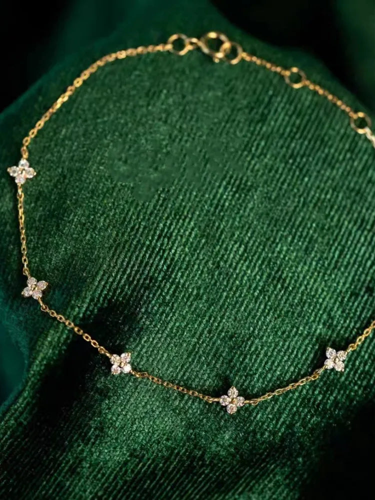 Add elegance with this 925 Sterling Silver Zircon Bracelet, featuring five delicate flowers with sparkling clear zircon. The 925 Sterling Silver Zircon Bracelet blends simplicity and INS-style charm, perfect for parties or weddings. Crafted in gold and silver tones, this 925 Sterling Silver Zircon Bracelet enhances any outfit with refined beauty. Make a statement with the 925 Sterling Silver Zircon Bracelet, a must-have fine jewelry piece for modern women.