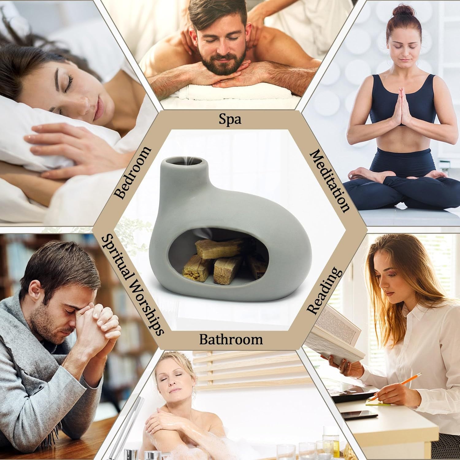 Experience calm and balance with the Ceramic Incense Burner with Palo Santo and Sage for Aromatherapy, a perfect blend of elegance and functionality. Handcrafted for a clean, even burn, this Ceramic Incense Burner with Palo Santo and Sage for Aromatherapy enhances relaxation, meditation, and home energy cleansing.