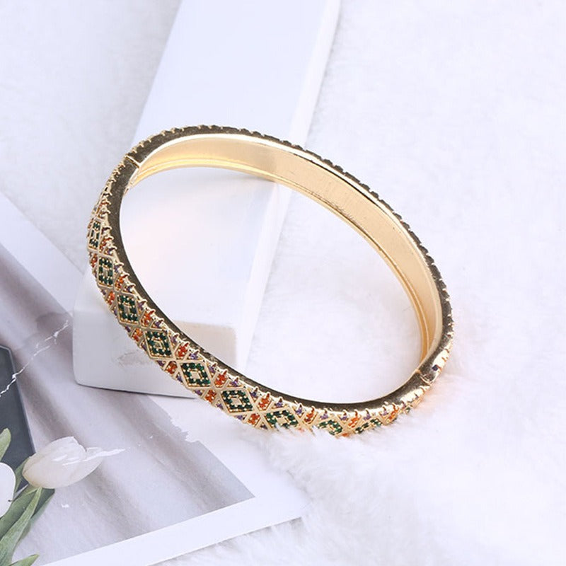 Copper Plated Gold Inlaid Zirconium Bracelet – Geometric Square Buckle Luxury Jewelry