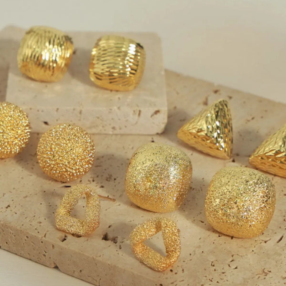 Gold-Plated Geometric Stud Earrings – Minimalist Luxury Jewelry for Women