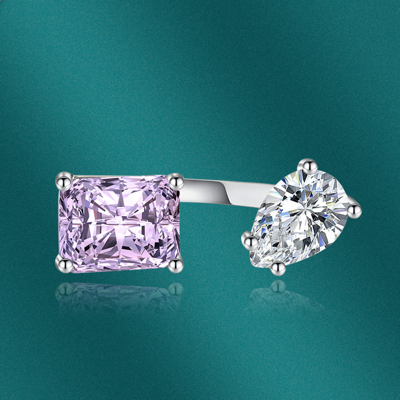 Internet Celebrity Accessory Pink Diamond Yellow Diamond Water Drop Geometric Rectangular Adjustable Ring bracelet