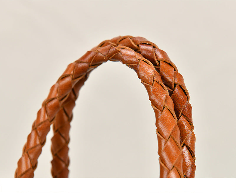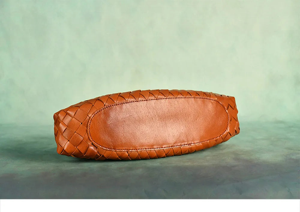 The New Genuine Leather Weave Hand Bags Tote Top Quality Women Basket Shopping Bags Handle Beach Hobos Handbag offers a spacious interior for essentials like phones, wallets, cosmetics, and shopping items. Its versatile design allows it to be used as a tote, beach bag, or casual hobo bag.