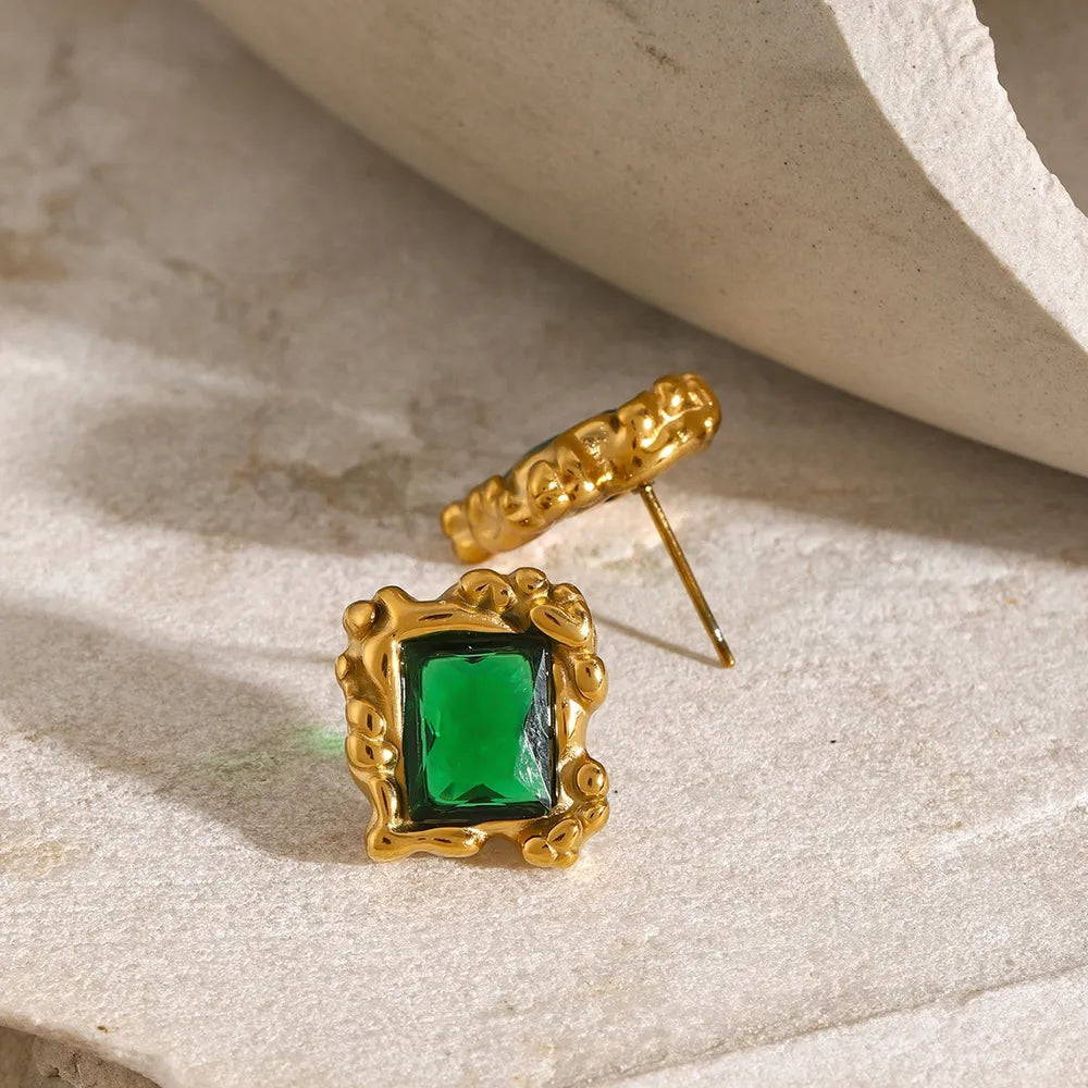 Stainless Steel Zircon Geometric Earrings – Modern Minimalist Sparkling Jewelry Gift