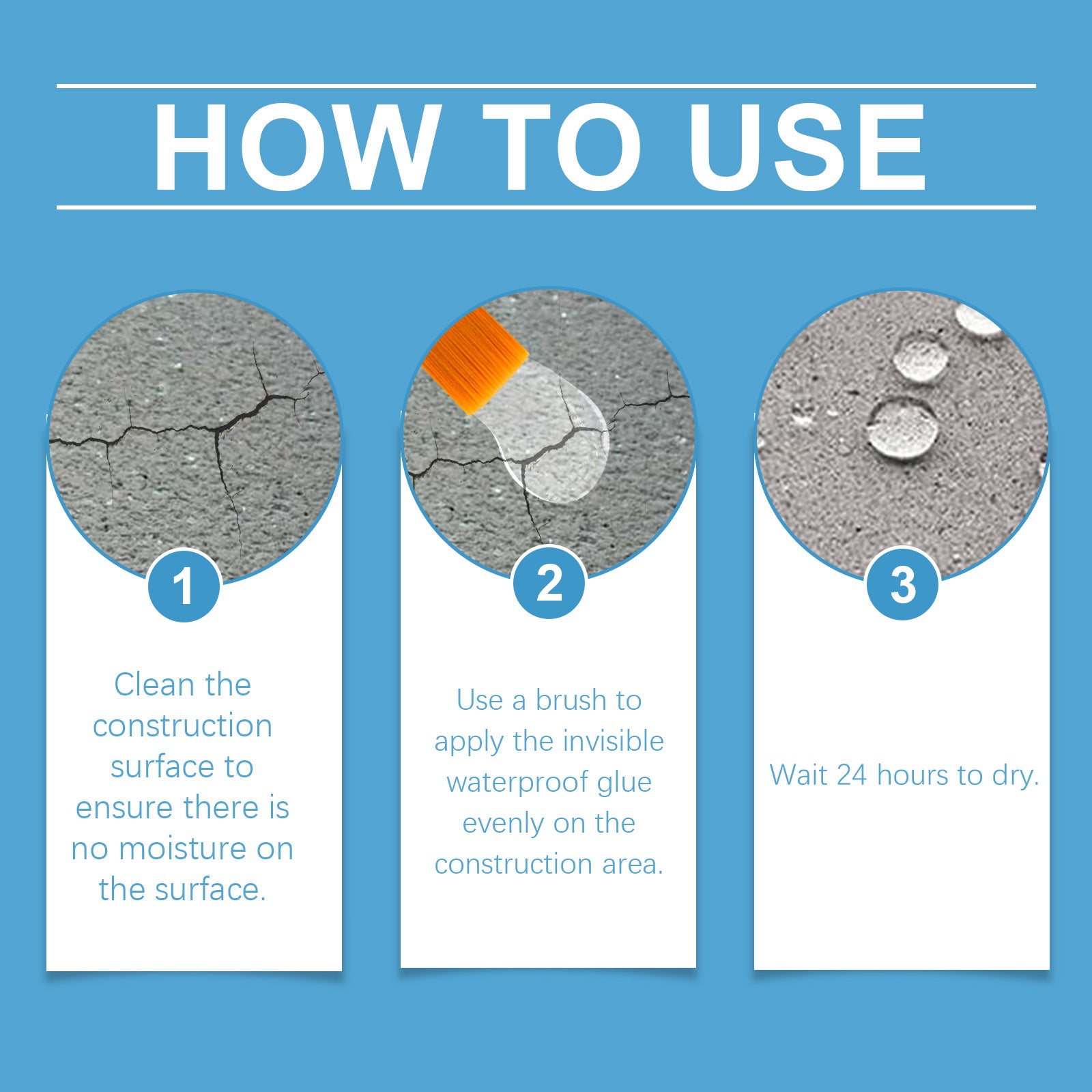 Simple to use, the Jue-Fish Transparent Waterproof Glue Invisible Sealing Glue Site Home Quick Filling Multi-Functional Waterproof Glue ensures a seamless, invisible seal. Just clean the surface, apply evenly with a brush, and allow 24 hours to dry for durable waterproof performance.